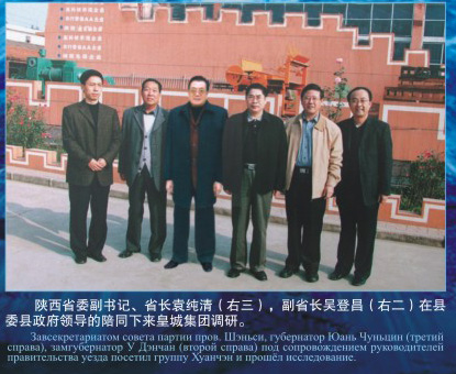 陜西省委副書記、省長袁純清(右三),副省長吳登昌(右二)在縣委政府領導的陪同下來皇城集團調研